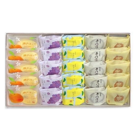 (吾作饅頭5個・みるくれもん5個・らむまん5個・栗まん5個・瀬戸ほっぺ せとか5個)